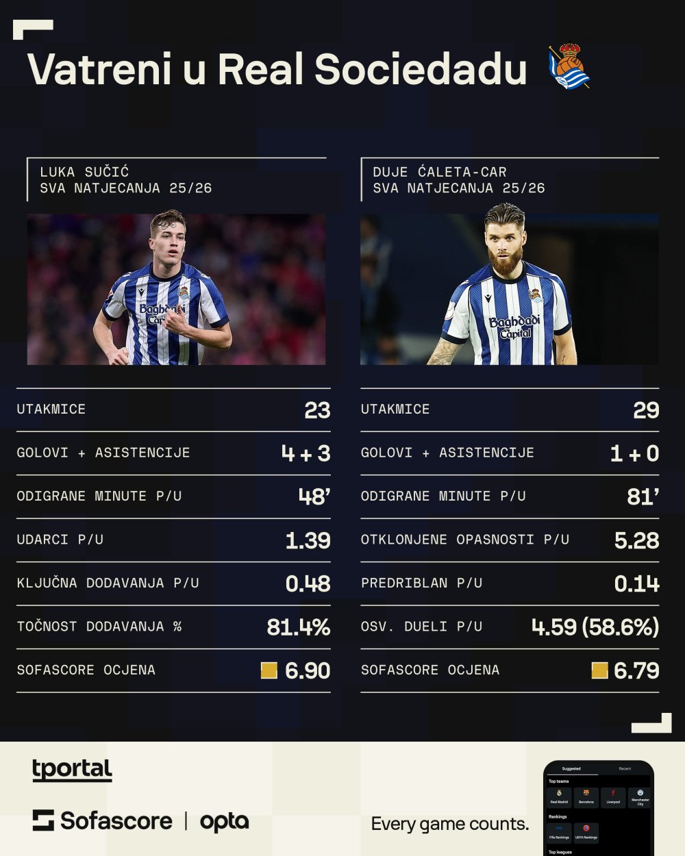 Za Hrvatsku je taj dio ključan: dvojica reprezentativaca u pravom su trenutku pronašla ritam, ulogu i sustav koji im odgovara. Sučić dobiva minute u nogometu koji traži njegove vrline. Ćaleta-Car je, pak, ponovno postao stoper koji igra i dominira u duelima. Ne moraju biti starteri da bi bili važni. Na Svjetskom prvenstvu često odlučuju upravo oni koji uđu spremni, u ritmu i s jasnom ulogom. A ako Dalić bude tražio razlog za optimizam, jedan dio odgovora mogao bi pronaći u San Sebastiánu.