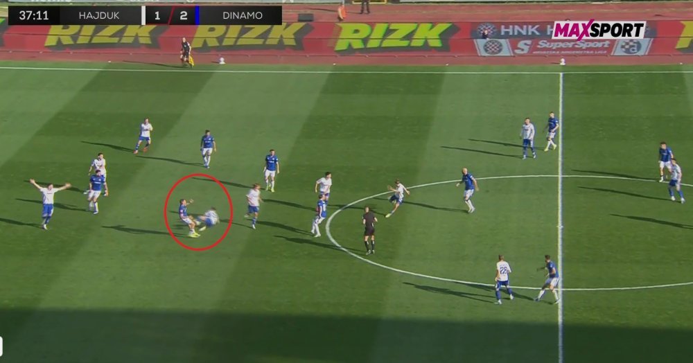 Gosti su u završnici prvog dijela poveli 3:1 golom Bakrara koji je na dodavanje Stojkovića pobjegao Hajdukovoj obrani. Ranije su igrači Hajduka u dva zračna duela tražili prekršaj, ali sudac Erceg ništa nije dosudio, a ni VAR se nije uključio.