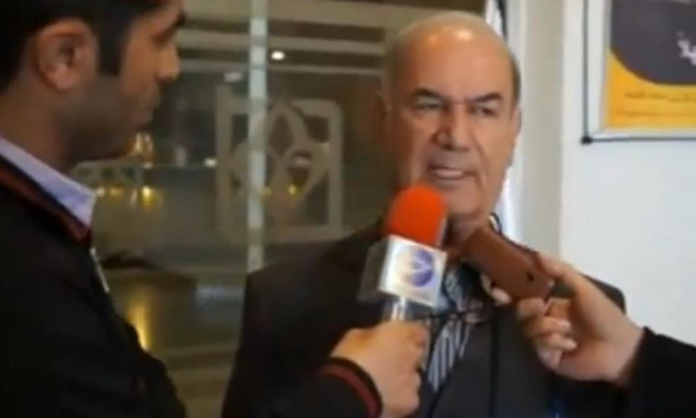 Nevjerojatan i kratak videouradak dolazi nam iz Irana. Kontroverzni predsjednik treće momčadi prvenstva razgovarao je s novinarima ispred zgrade.