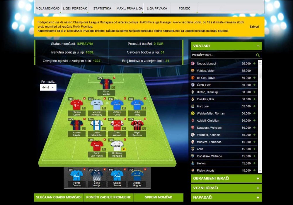 Ne zaboravite, ista stvar od utorka vrijedi i za fantasy Lige prvaka!