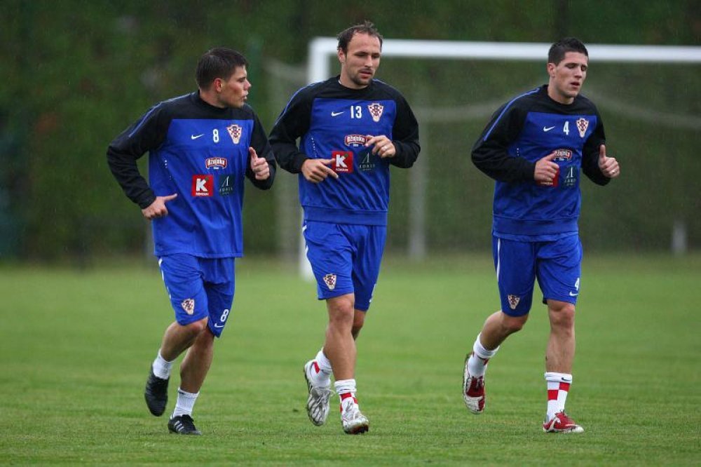 Na nogometno igralište u Brežicama 'kockasti' su istrčali u 18 sati, a cijeli trening obilježila je kiša koja je ometala i dobro oprala hrvatske reprezentativce.