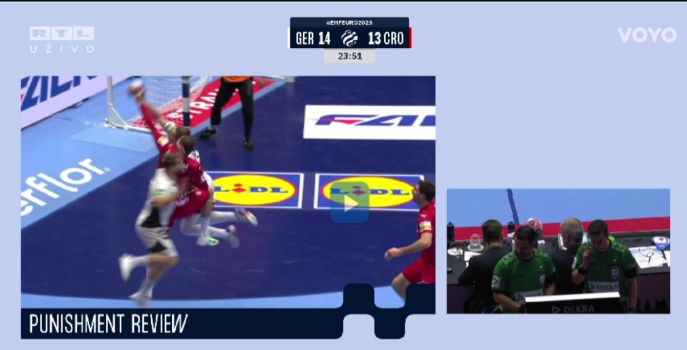Suci su prekinuli igru i pregledali snimku, a nakon provjere odlučili su da nema elemenata za kaznu te da je pogodak Njemačke regularan. Odluku su donijeli slovenski suci, koji su procijenili da je kontakt bio nenamjeran i da se dogodio u žaru borbe. Tako da je NJemačka dobila gol umjesto dvije minute kazne.