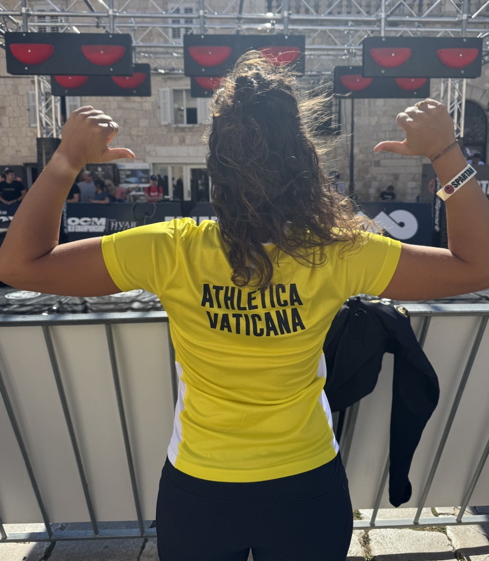 Reprezentaciju najmanje zemlje na svijetu čini jedna članica, a ona je 28-godišnja Benedetta Franchini, koja će u nedjelju nastupati u 'sprintu', utrci na pet kilometara s 20 prepreka. Benedetta je i prošle godine bila na Hvaru, ali se nije natjecala, a ove godine je u oko upao njezin dres na kojem na latinskom piše 'Athletica Vaticana'.
