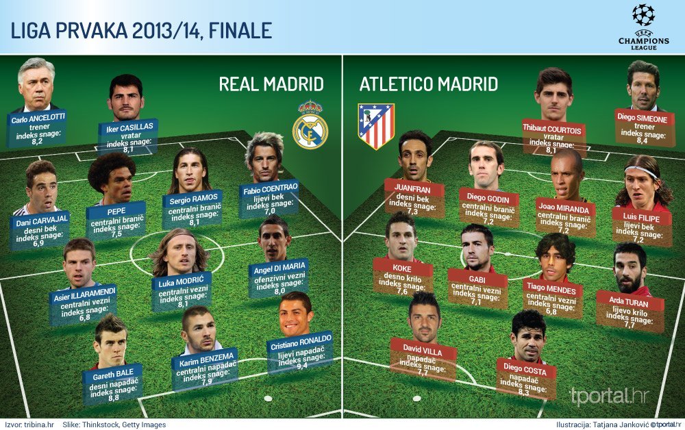 Real u Lisabonu lovi desetu krunu, 'La Decimu', prvu nakon 12 godina posta, dok Atletico lovi prvijenac u elitnom društvu nakon što je u svom dosadašnjem jedinom finalu 1974. godine izgubio od Bayerna.