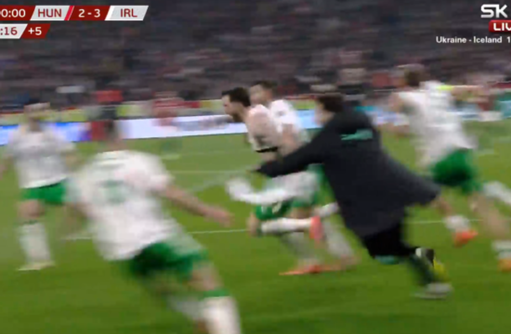 Onda, u posljednjim sekundama utakmice je jedna duga lopta završila u kaznenom prostoru Mađarske. Nju je Scales spustio do Parrotta koji kompletira hat-trick i dovodi Irsku na drugo mjesto. Pogodak i ludnicu pogledajte OVDJE.