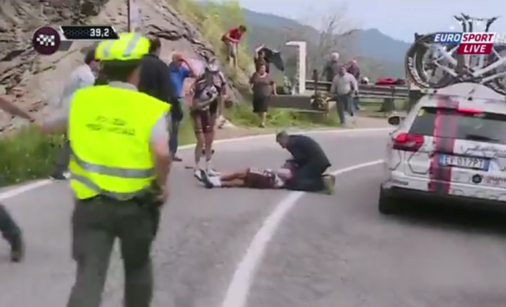 Etapu je obilježio težak pad jednoga od kandidata za visok plasman u ukupnom redoslijedu, Talijana Domenica Pozzoviva (AG2R), koji je izgubio kontrolu nad svojim biciklom na nizbrdici 40-ak kilometara prije cilja, te je snažno udario licem o asfalt. Pozzovivo, koji je prošle godine bio peti na 'Giru', zbog toga je pada morao odustati od daljnjeg nastupa, te je kolima hitne pomoći prevezen u bolnicu. Srećom, liječnička služba utrke objavila je kako nije zadobio ozljede opasne po život.