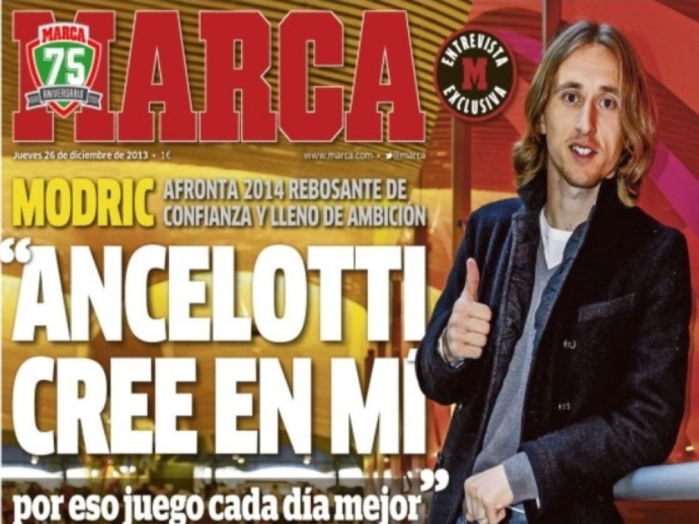 Veliki intervju pod naslovom 'Ancelotti vjeruje u mene, jer svaki dan igram sve bolje' zauzima najveći dio naslovnice španjolskog dnevnog lista, u kojem Modrić pun samopouzdanja najavljuje ambicioznu 2014. godinu. Intervju još nije obavljen u internetskom izdanju, ali slična je tema bila razgovora s portalom Goal.com.