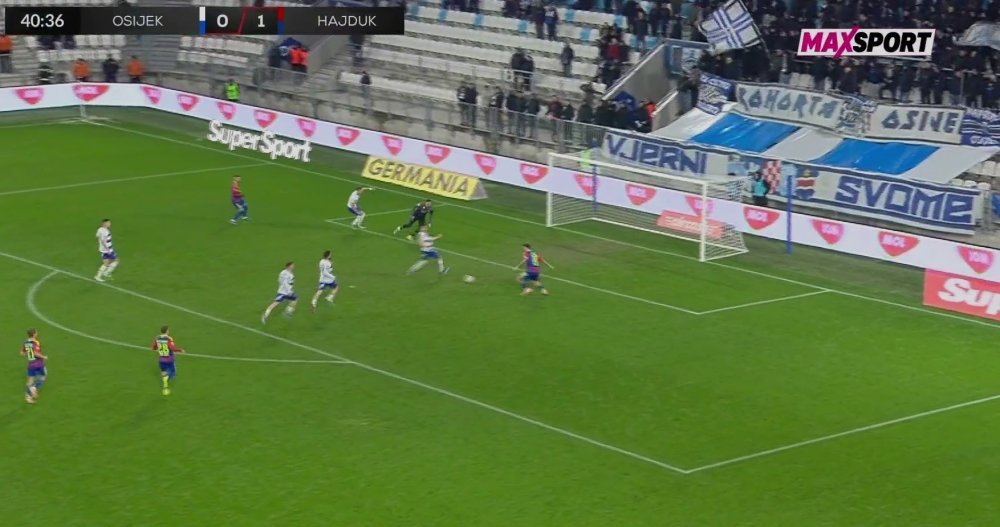 Veliku priliku propustio je Hajduk u 41. minuti derbija protiv Osijeka.
