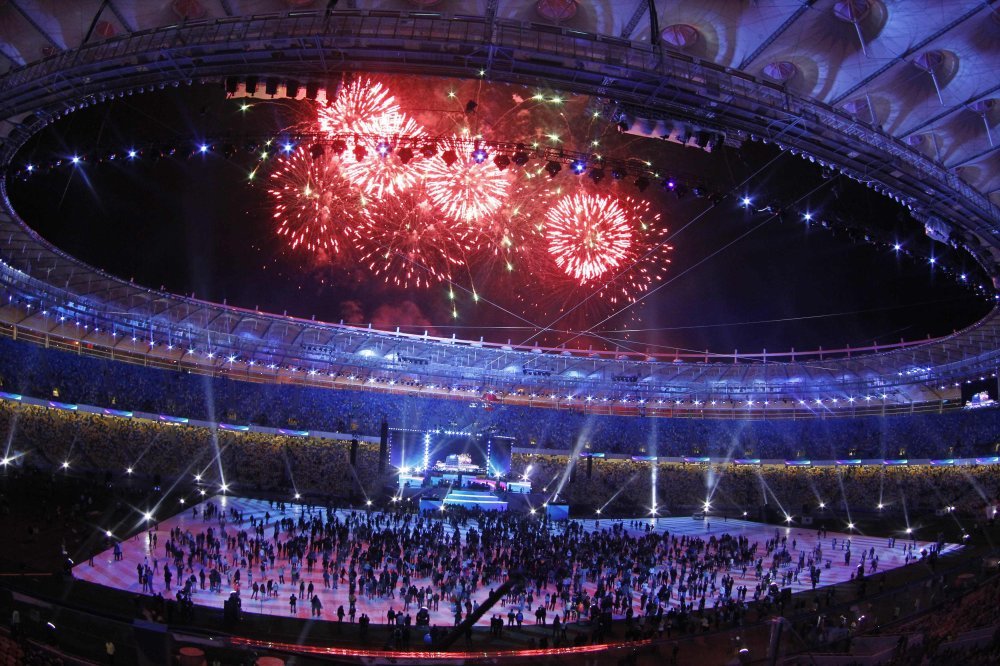 Više od 60.000 gledatelja prisustvovalo je otvaranju renoviranog Olimpijskog stadiona u Kijevu na kojem će se igrati finalni susret nogometnog prvenstva Europe 2012.. Svečanost otvaranja obilježio je nastup kolumbijske pjevačice Shakire, ali i manji požar.