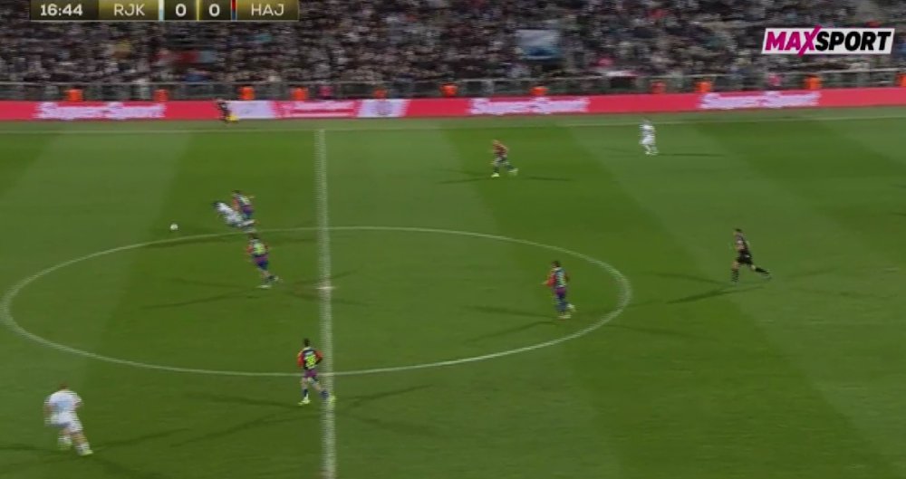 Zlomislić je u 17. minuti ispucao dugu loptu, Adu-Adjei je pobjegao obrani i s centra krenuo sam prema vratima Hajduka. U punom sprintu sustigao ga je Ron Raci i srušio ga na travnjak.