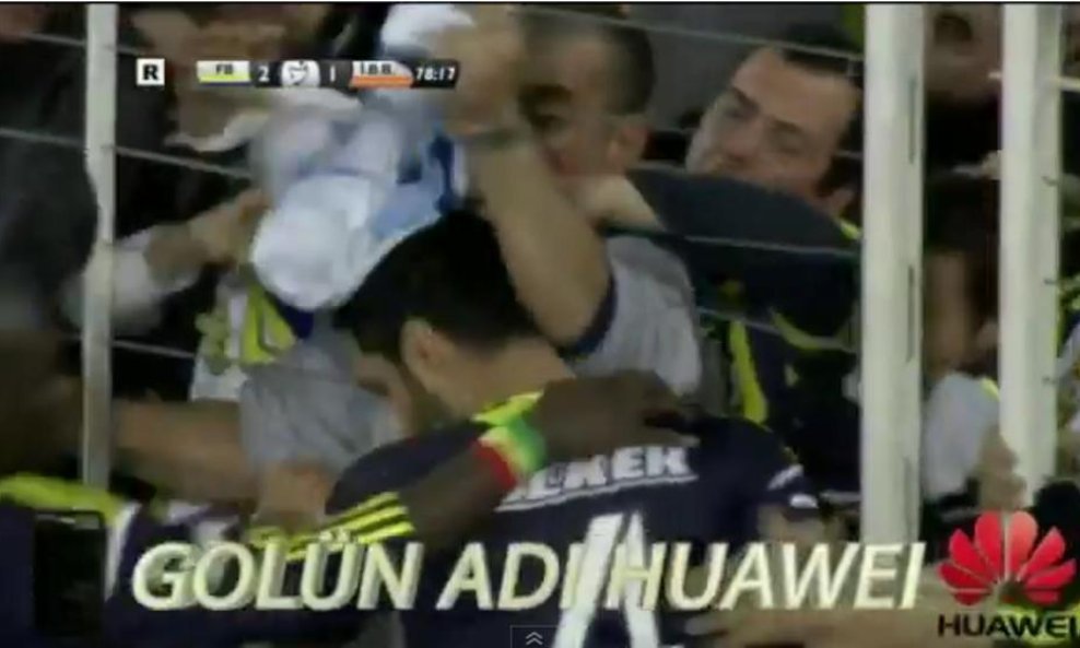 Stoper domaćina odmah je otrčao do sektora s najvatrenijim navijačima gdje se priljubio uz ogradu, a tamo ga je dobro izljubio jedan od simpatizera Fenerbahčea.