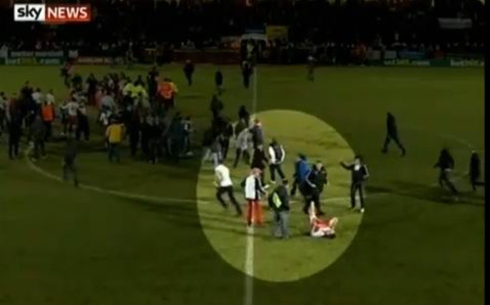 Fitzgerald je utrčao na teren u trenucima dok je momčad Stevenagea na centru slavila pobjedu 3:1 i veliki uspjeh u trećem kolu FA kupa. U velikoj gužvi šakom je udario jednog od junaka utakmice. Laird je od siline udarca završio na travi.