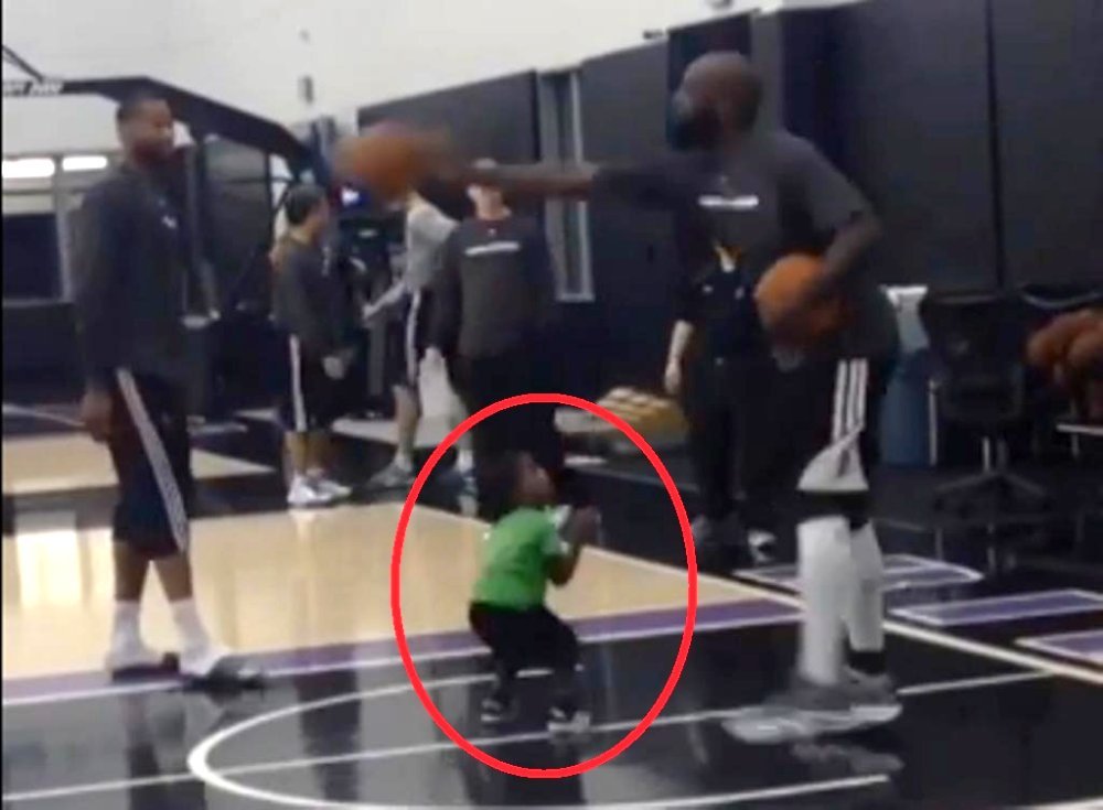 Očigledno je igrač Kingsa želio pokazati sinu da nije lako zabijati koševe, no odmah mu je dao drugu loptu da pokuša opet.