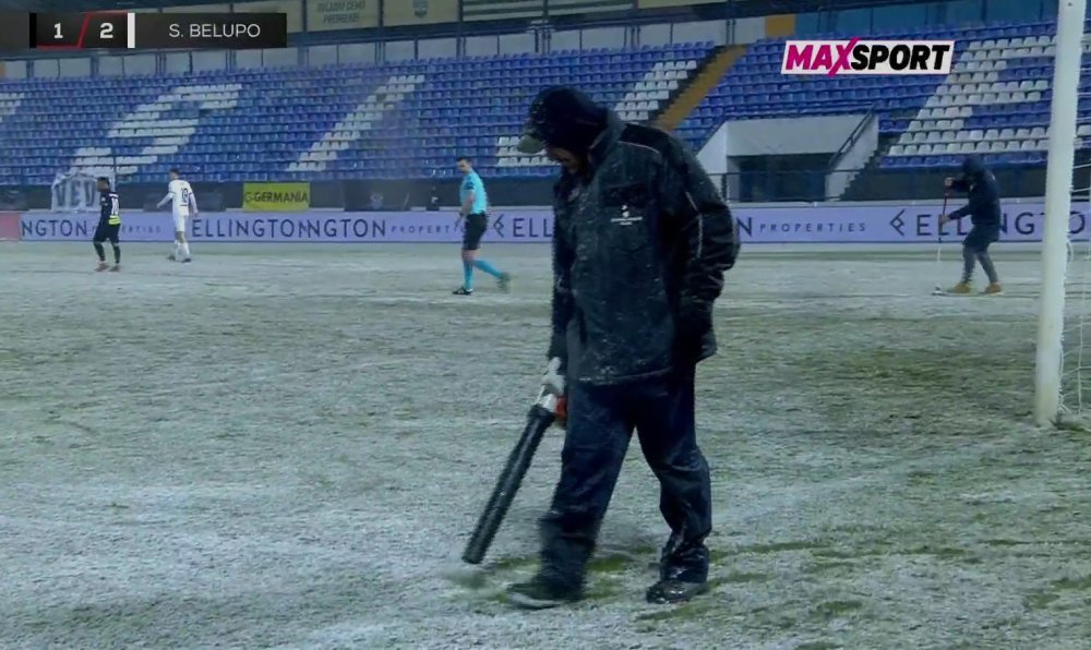 Situacija je postala toliko loša da je VAR bio van funkcije, a u 72. minuti se utakmica više nije mogla nastaviti. Onda su na scenu stupili čistači snijega.