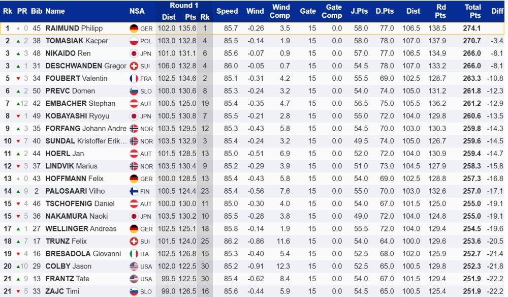 Zanimljivo, Raimund nikad u karijeri nije upisao pobjedu do Olimpijskih igara... U prvoj seriji je skočio 102 metra, a u drugoj 106.5 metara. Tomasiak je skočio ukupno metar i pol duže, ali uz veću pomoć vjetra.