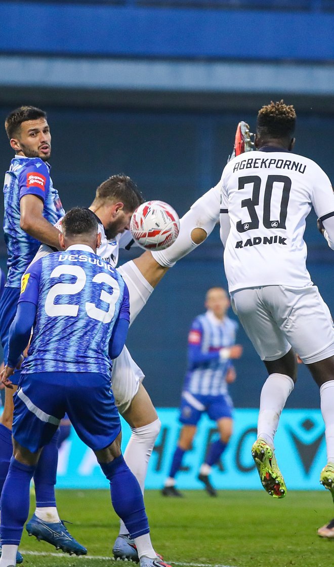 Prilika za Lokomotivu! Briljantna obrana Čovića. Vešović je ubacio na peterac, ali Čović čudesno brani udarac Stojakovića glavom s pet metara.