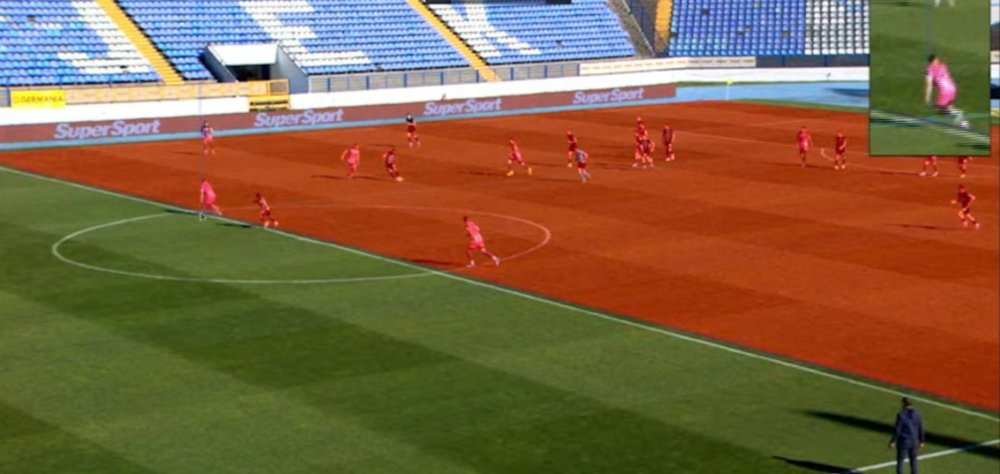 Tijekom igre, a prilikom primanja duge lopte od svog suigrača, domaći igrač br. 10 u daljnjem kretanju postiže pogodak. Pomoćni sudac prepoznaje kažnjivo zaleđe kada je lopta upućena prema napadaču ali prema VAR Protokolu dopustio je nastavak igre te nakon postignutog pogotka signalizirao kažnjivo zaleđe.