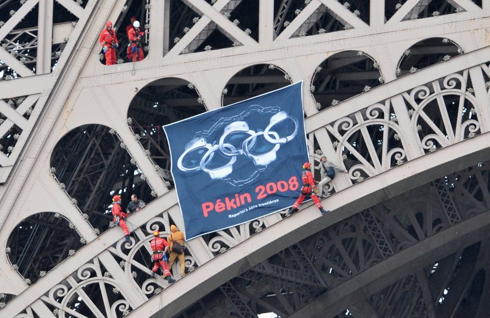 Veliki izgredi i protukineski protesti u Parizu, Londonu i San Franciscu, pa čak i tijekom ceremonijala paljenja plamena u grčkoj Olimpiji, nagnali su MOO da odustane od tradionalne "olimpijske štafete" širom svijeta.