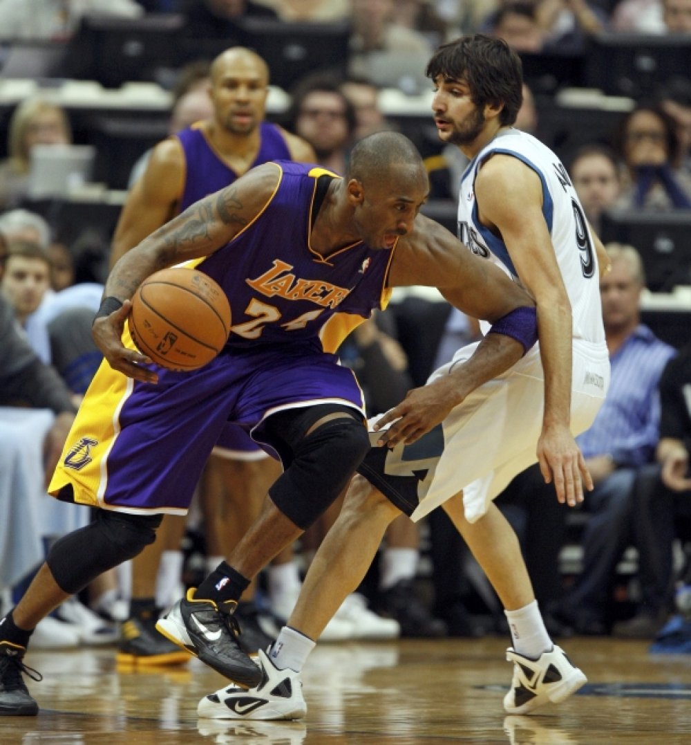 Nakon nedjeljne pobjede LA Lakersa kod Minnesote 106:101 u NBA ligi, Kobe Bryant nakratko se ispred svlačionica pridružio u razgovoru reprezentativnim suigračima iz španjolske selekcije, svom klupskom suigraču iz Lakersa Pauu Gasolu i Minnesotinom Rickyju Rubiju