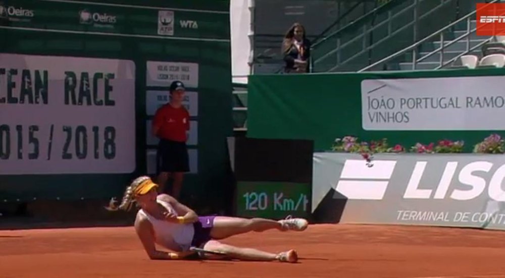 Bouchard se poskliznula i pala, ali je u takvoj 'mat' situaciji vratila lopticu, nastavila igrati i dobiti taj poen te ujedno oduzeti suparnici servis na početku drugog seta.