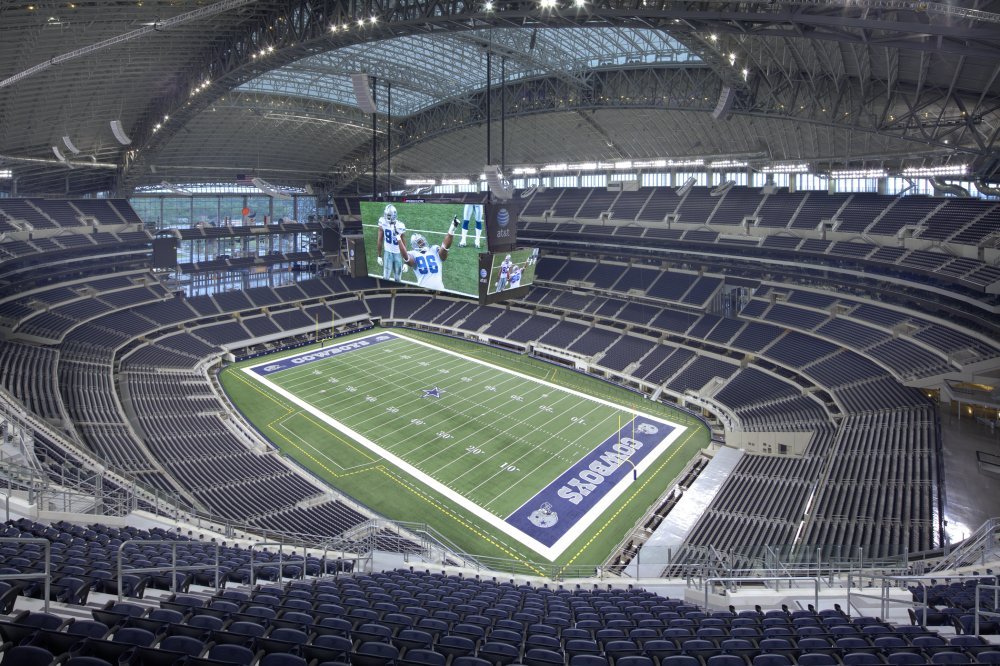 A sve što se događa na terenu može se gledati na središnjem videobloku koji visi s krova i pokazuje sliku na sve četiri strane te je u vrijeme gradnje bio najveći na svijetu, no u međuvremenu je - također u Teksasu, na automotodromu u obližnjem Fort Worthu - napravljen još veći. Kako su neodvojiv dio sportskih događanja u SAD-u i hrana i piće ili samo šetnja stadionom, tako je u njegovim luksuznim ložama, hodnicima, zonama za osvježenje i drugdje postavljeno više od tri tisuće dodatnih ekrana, pa se događanja na terenu mogu pratiti odasvuda prije nego što se vratite na tribine. S obzirom na to da im dolazi publika s potpuno drukčijim navikama, bit će zanimljivo vidjeti kako će se prilagoditi.