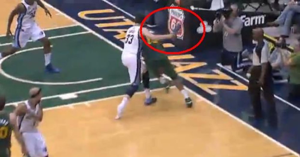 Dovitljivi španjolski centar Memphis Grizzliesa Marc Gasol pokušao je na neuobičajen način izbiti loptu iz ruku suparničkog košarkaša, Utahina centra Dereka Favorsa