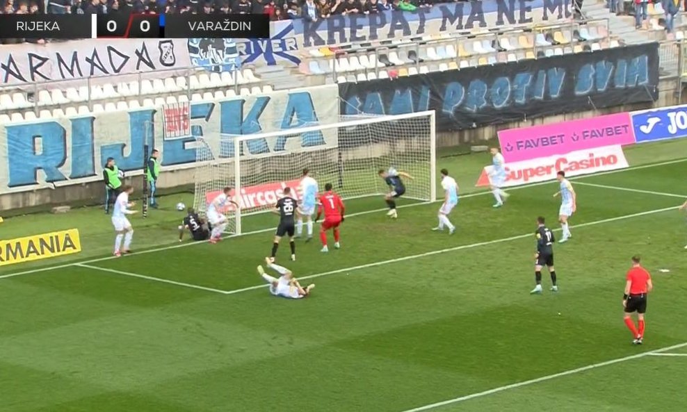 Napadač Varaždina Marko Dabro imao je u 16. minuti priliku matirati Rijeku na Rujevici.