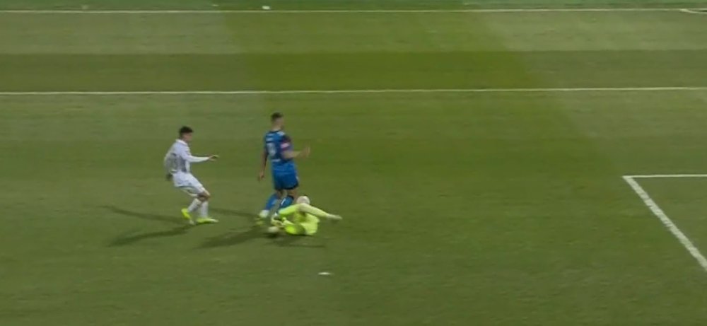 Tada je Stipe Jurić pobjegao obrani Hajduka i izbio sam pred vratara Tonija Silića. Jurić ga je pokušao zaobići, a onda ga je vratar Hajduka srušio.