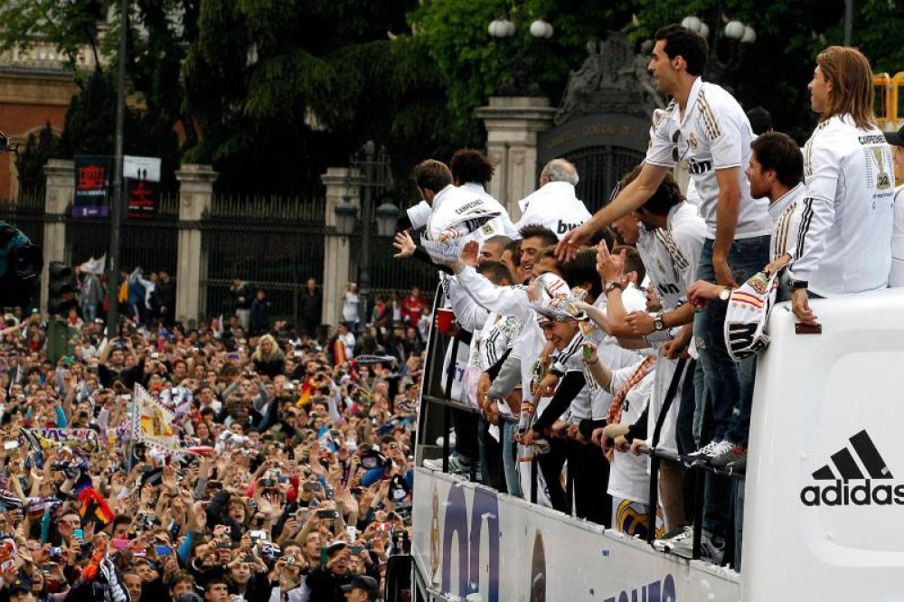 Uz zvuke Queenove uspješnice We Are the Champions nogometaši madridskog kluba i trener Jose Mourinho probijali su se ulicama glavnog grada otpozdravljajući navijačima.