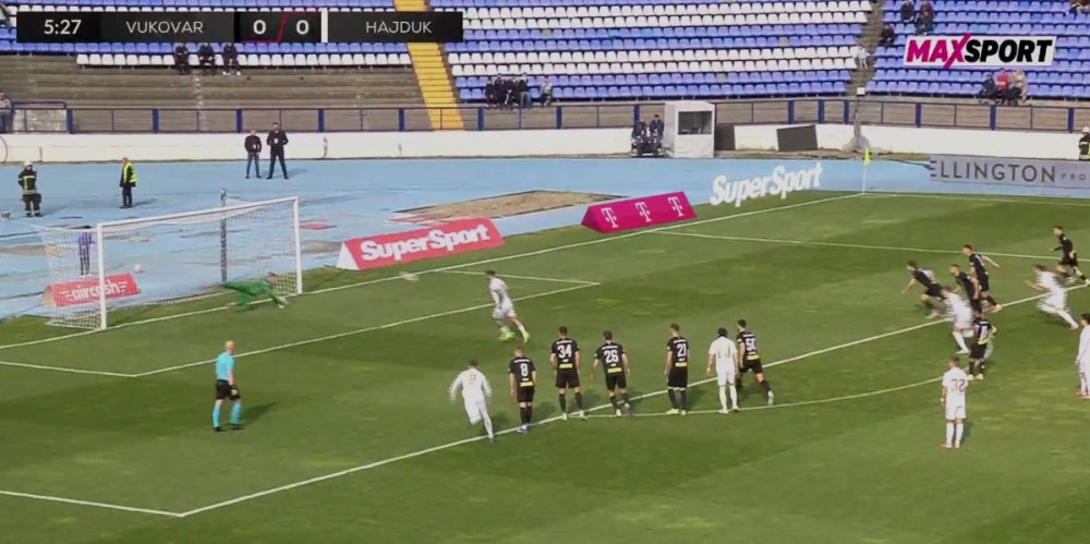 Golman Pintol najprije je obranio udarac Marka Livaje, no nakon odbijene lopte srušio je napadača Hajduka u kaznenom prostoru, pa je sudac pokazao na bijelu točku.