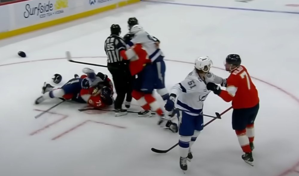 Florida je u predsezonskoj utakmici pobijedila Tampa Bay 7:0, ali je susret zasjenila opća makljaža na ledu.