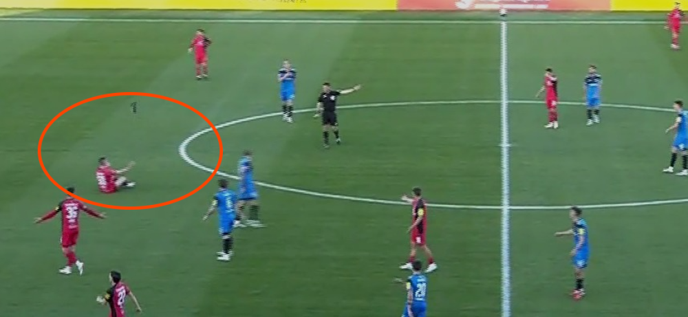 Naime, nakon jednog duela Ante Erceg je ostao ležati na travnjaku, a sudac Kolarić se nije oglasio. Erceg je u duelu ostao bez kopačke što je i demonstrativno pokazao.