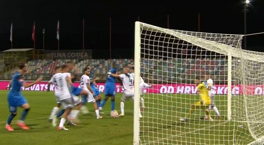 U 34. minuti susreta gosti su izborili korner, a nakon ubačaja iz kuta lopta je pala točno pred Mamuta. Igrač Varaždin bio je na metar i pol od gola, ali je uspio poslati loptu preko grede.