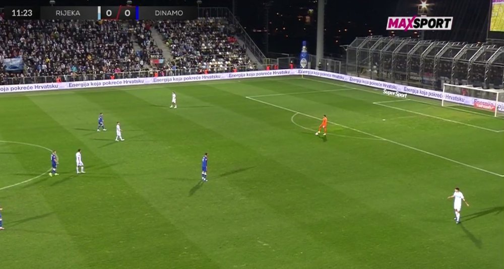 Golman Rijeke Martin Zlomislić je u 12. minuti čuvao loptu u nogama skoro cijelu minutu čekajući da mu priđe neko od Dinamovih igrača. Na kraju je to i dočekao pa je ispucao loptu što dalje od gola.