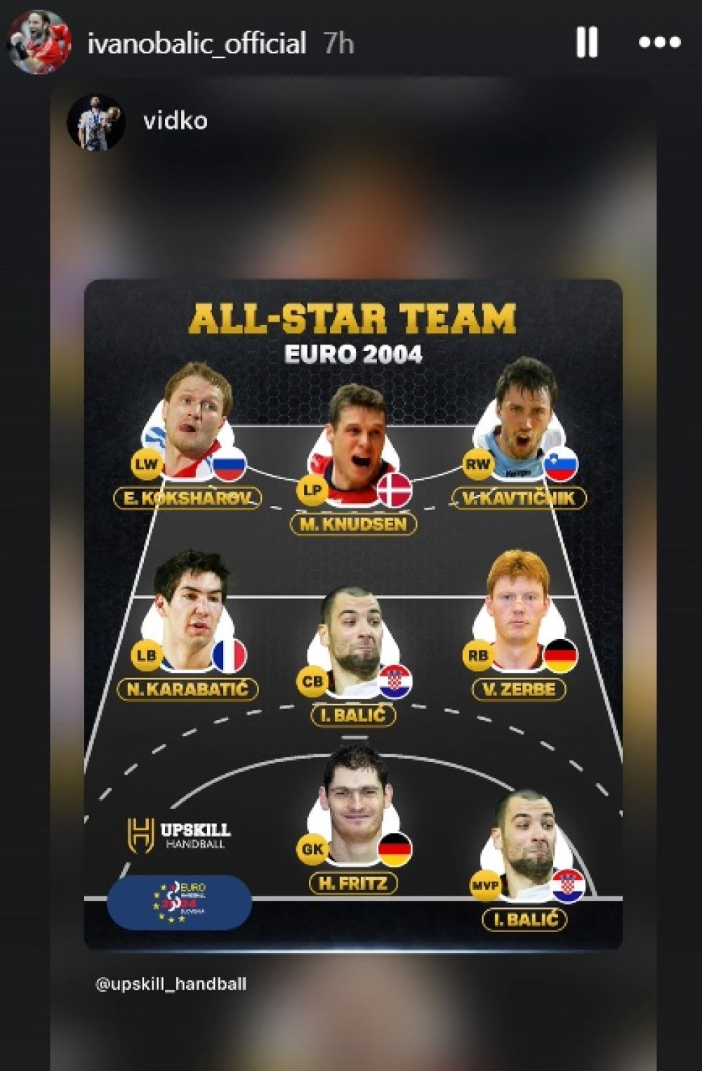 Balić je u storyju objavio grafiku idealne postave Europskog prvenstva 2004. godine na kojem je Hrvatska došla do četvrtog mjesta.