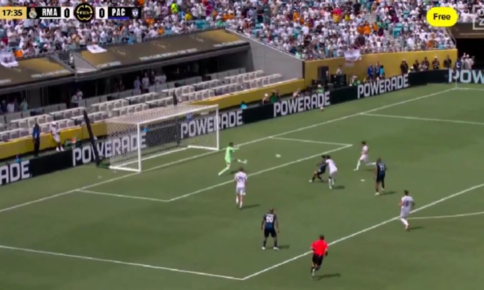 U 18. minuti umalo novi šok za Real. Opet je smiješno ispala obrana Reala, bila je to kontra dva na jedan, no najprije je Courtois obranio Kenedyju, a onda iz blizine iz odbijanca i Bautisti. Nevjerojatno loše igra obrana Reala i da su napadači Pachuce bili samo malo spretniji, mogli su voditi.