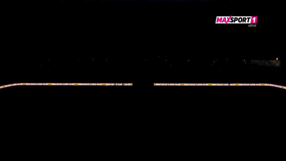 Komentator MAXSporta odjavljivao je poluvrijeme, a u tom trenutku nestalo je struje. Čitav stadion, ali i okolne kuće bile su u mraku osim LED panela oko travnjaka, koji su uredno radili.