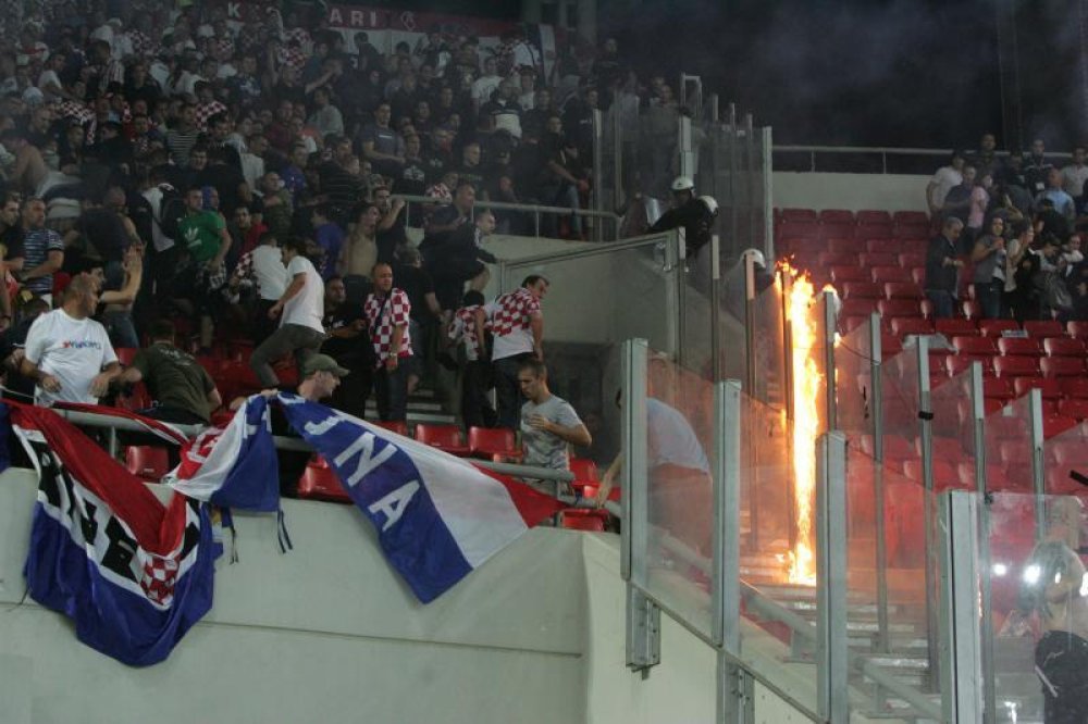 Ne smijemo ni zamisliti što bi se dogodilo da je molotovljev koktel, koji su bacili maskirani grčki huligani, prešao ogradu i zapalio se među ljudima. Ovako je, zapevši za ogradu od pleksiglasa, aktiviran, gdje se i zapalio. Da je došao među publiku, bilo bi među hrvatskim navijačima i teško ozlijeđenih i smrtno stradalih. Činjenica jest da su hrvatski navijači od organizatora utakmice, grčkog Saveza i svih snaga sigurnosti, u kooperaciji s grčkim navijačima ubačeni u klopku.