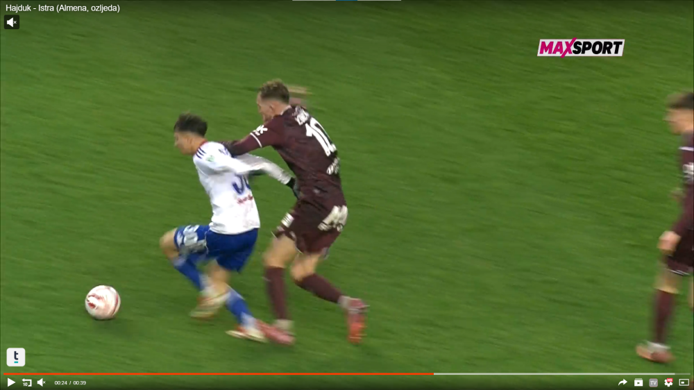 Ipak, Španjolac je doživio veliki peh kada ga je u sudačkoj nadoknadi Stjepan Lončar nagazio nogom. Almena je odmah signalizirao klupi da ne može nastaviti, a umjesto njega ušao je Bruno Durdov. Lončar je pomalo nevjerojatno prošao bez kartona, a tek će se poslije vidjeti koliko je ozljeda zapravo teška. Na prvu nije izgledalo niti malo ugodno.