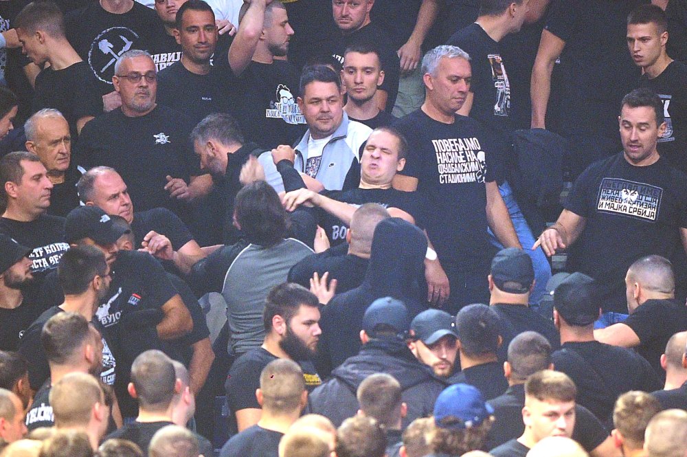 Posebnu pozornost izazvao je i natpis na majici jednog od navijača, vidljiv na fotografijama s tribina. Na njoj je ćirilicom pisalo: ‘Povećajmo nasilje na nogometnim stadionima’. I dok su se dvojica navijača pored njega tukla, muškarac s tom porukom stajao je mirno, što je dodatno šokiralo javnost i izazvalo niz reakcija na društvenim mrežama.