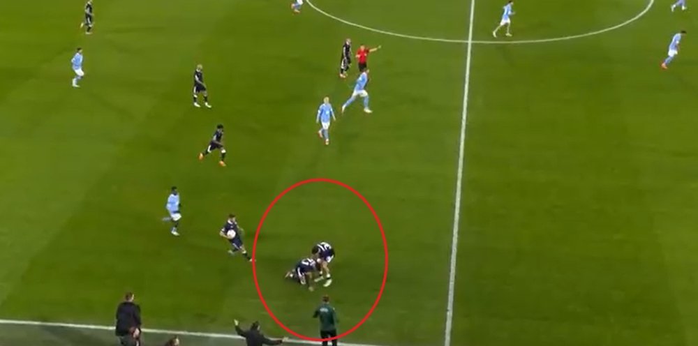 No, uoči posljednjeg napada na utakmici Mounsef Bakrar dobio je udarac lice od suparničkog igrača. Dosuđen je prekršaj na sredini terena, a Bakrar se uhvatio za lice i ostao ležati na travnjaku.