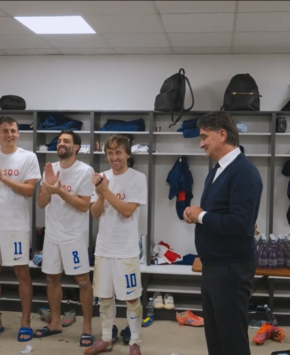 Nakon remija koji je doveo momčad na prag plasmana na Svjetsko prvenstvo 2026., izbornik Zlatko Dalić dobio je posebnu nagradu. Predsjednik HNS-a Marijan Kustić uručio mu je personalizirani dres s brojem 100 i poručio mu: