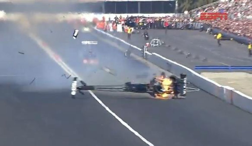 Jedan od najboljih vozača Drag Race automobila, Antron Brown može zahvaliti sreći što je izvukao živu glavu na utrci prošli vikend