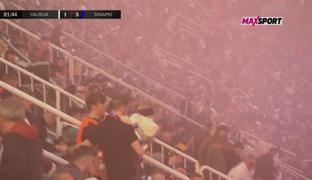 U tim trenucima s južne strane, gdje su smješteni bad Blue Boysi, počela je velika bakljada, bačene su i brojne dimne kutije, te je došlo do višeminutnog prekida.