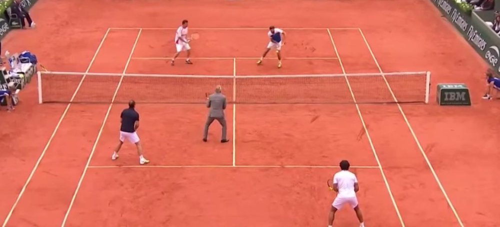 Ovakvi mečevi osim teniske nostalgije uvijek moraju i nasmijati gledatelje, a za to je često zadužen uvijek raspoloženi Indijac Bahrami. Pozvali su ga Francuzi u pomoć u drugom setu, a njega nikada ne treba zvati dva puta. Ušao je na teren u odijelu (video ispod teksta) i uveselio gledatelje u idućih nekoliko poena. Malo zatim uz ovacije je izišao, a Goran i Sergi dovršili su posao.