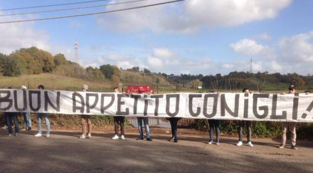 Roma fans brought 100 pounds of carrots to teams training with this banner that says:"Enjoy your meal, rabbits" pic.twitter.com/7qrO8ePzZd