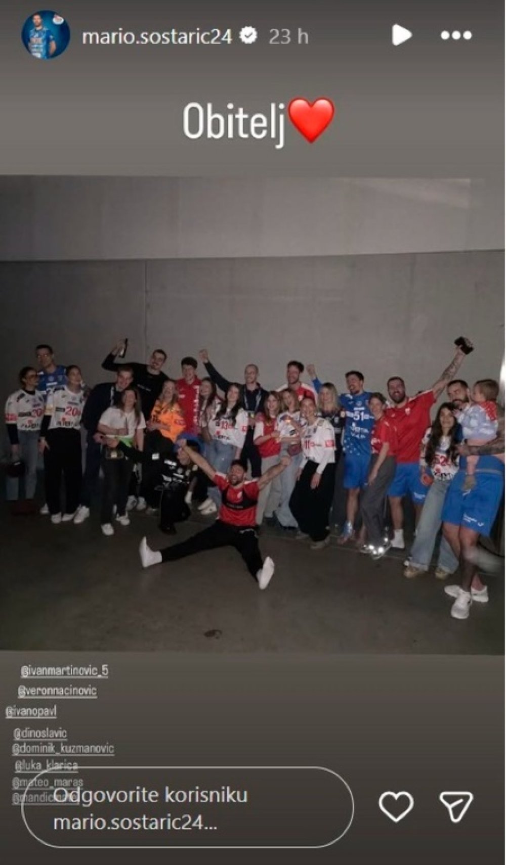 A da je tome tako potvrđuje i potreba Marija Šoštarića da na svom Instagram profilu podijeli fotografiju gdje su svi rukometaši, zajedno sa svojim 'boljim polovicama', u veselom izdanju i gdje se slavi još jedan veliku uspjeh hrvatskog rukometa, odnosno druga uzastopna medalja.