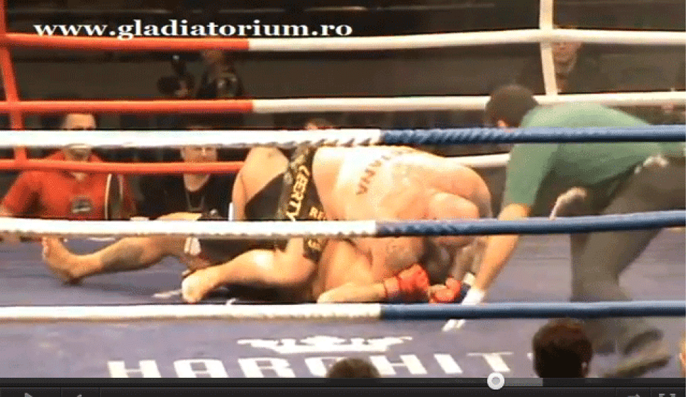Mahle je završio na podu, Rumunj je cijelom svojom težinom završio na njegovom licu, pa je Nijemcu jedino preostalo da preda meč.
