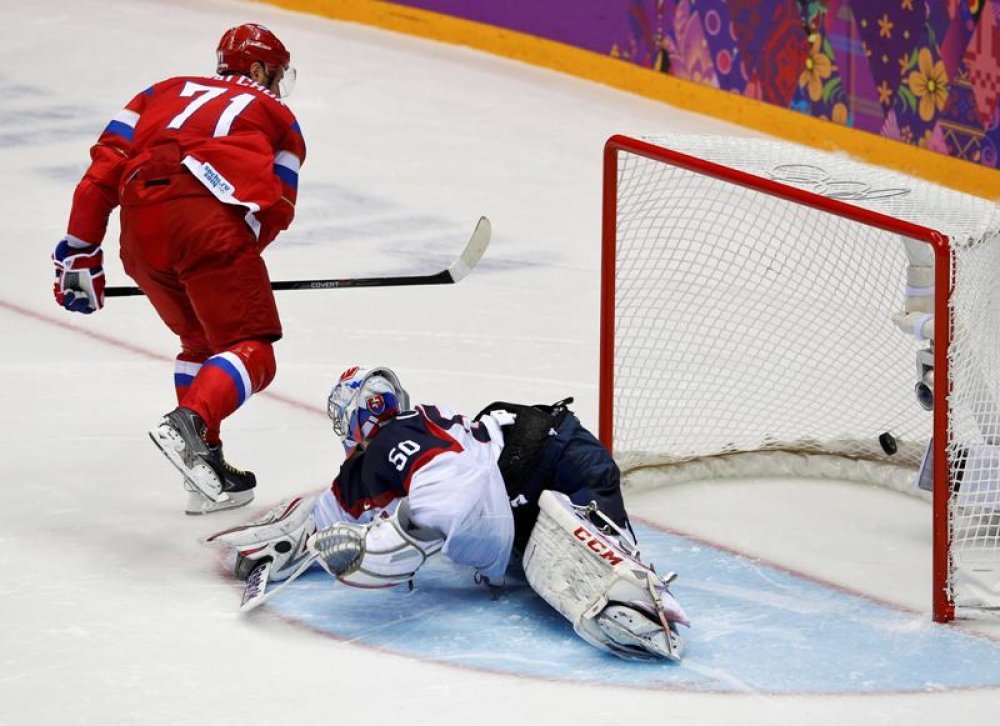 U skupini A Rusi su tek na penale savladali Slovake 1-0, dok su Amerikanci opravdali ulogu velikih favorita protiv Slovenaca i na kraju su slavili s 5-1, te su kao pobjednici skupine osigurali izravan plasman u četvrtfinale. Ruski vratar Semjon Varlamov skupio je 27 obrana, uključujući i dva obranjena penala, dok su za Ruse iz penala zabili Ilja Kovaljčuk i Aleksander Radulov.