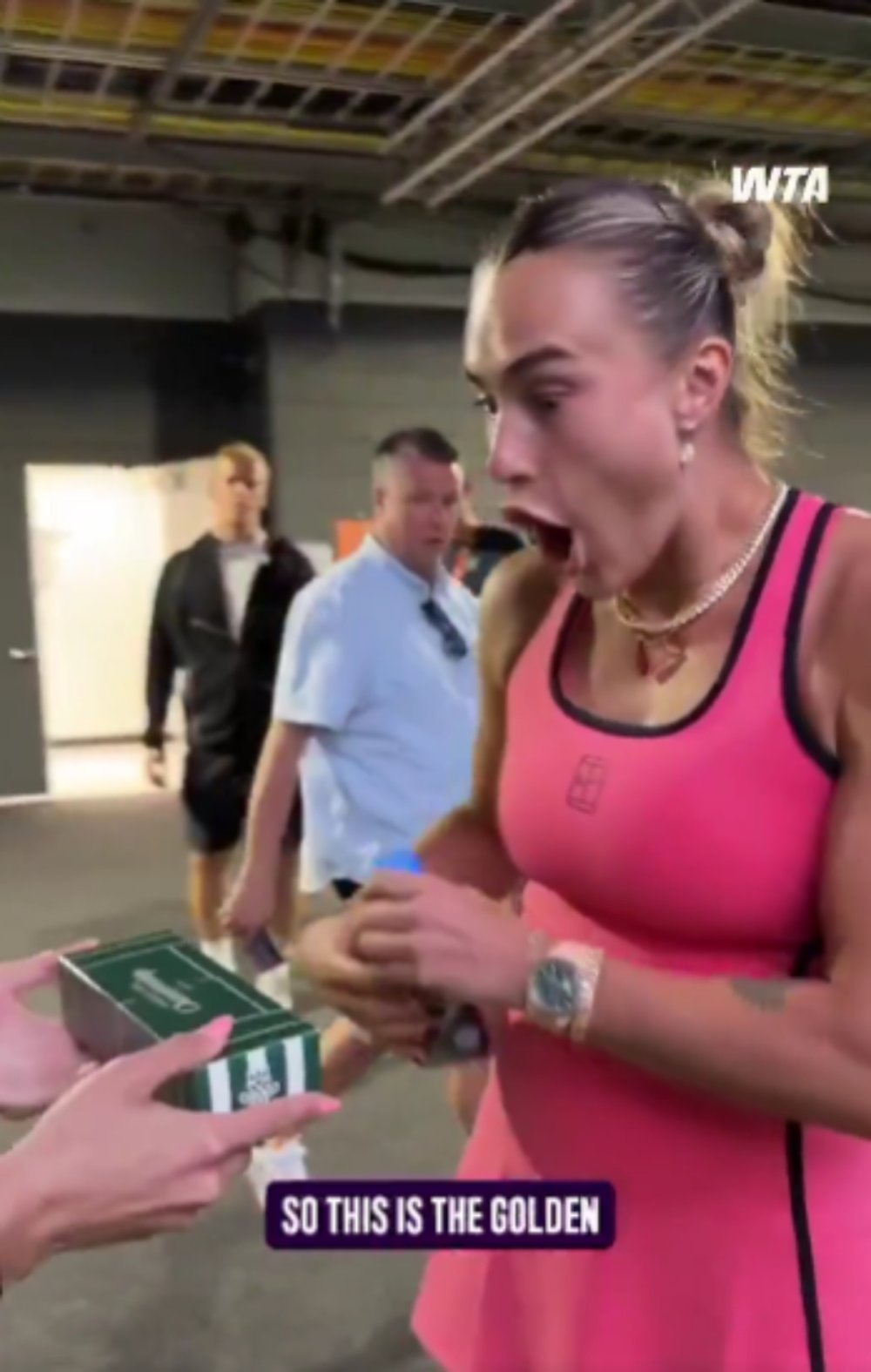 Nakon meča, član WTA-ova medijskog tima prišao joj je s ovim neobičnim obrokom kako bi snimili sadržaj za društvene mreže, a Sabalenka nije skrivala oduševljenje.